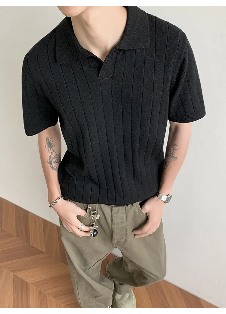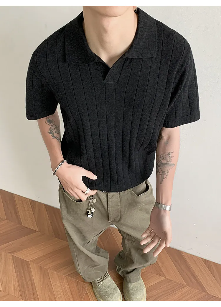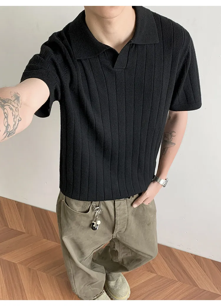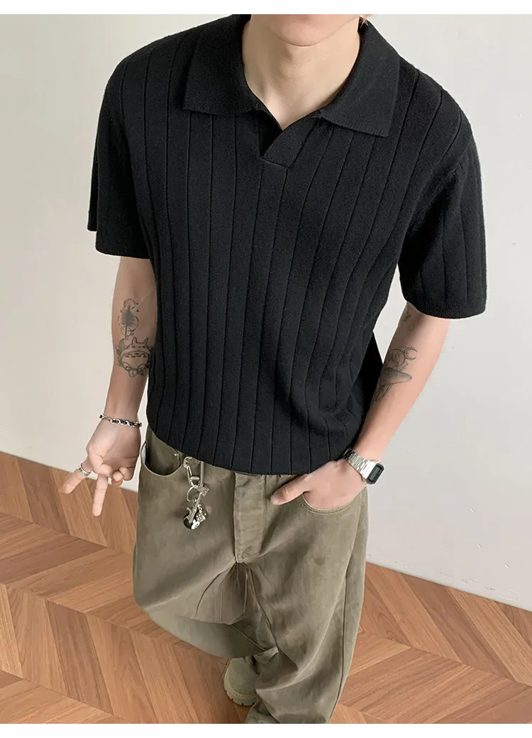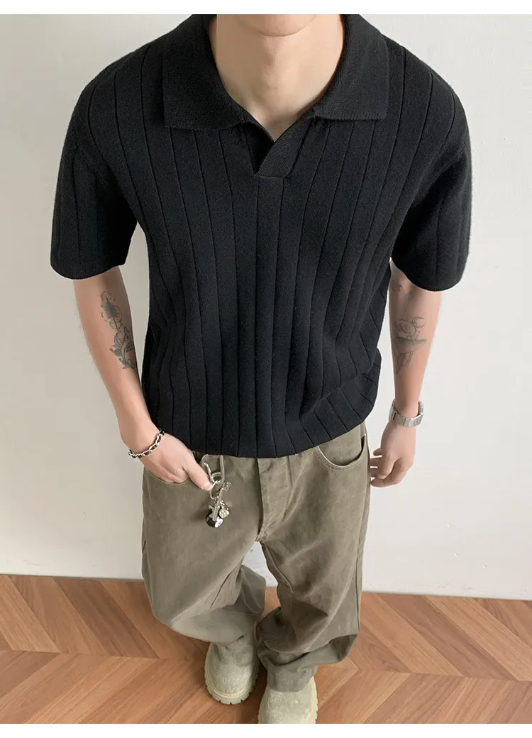 Style 1: Summer Men V Neck Knitted Polo Shirt