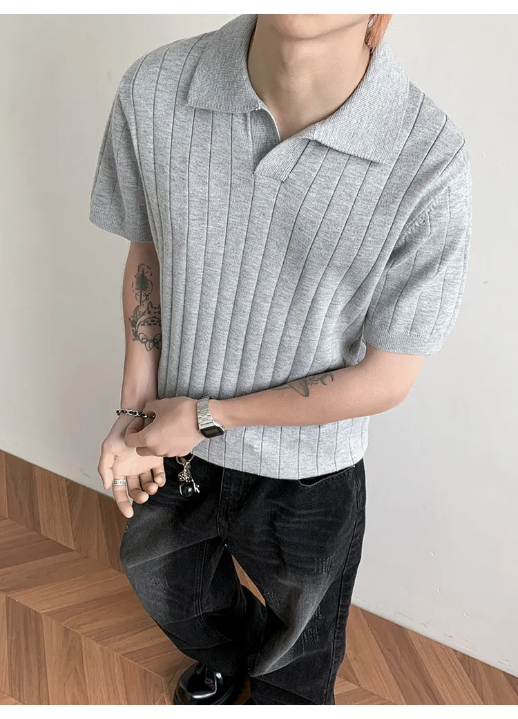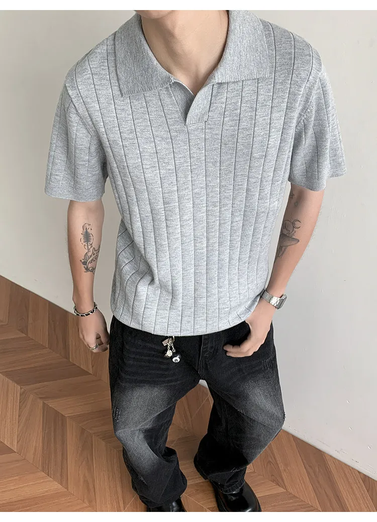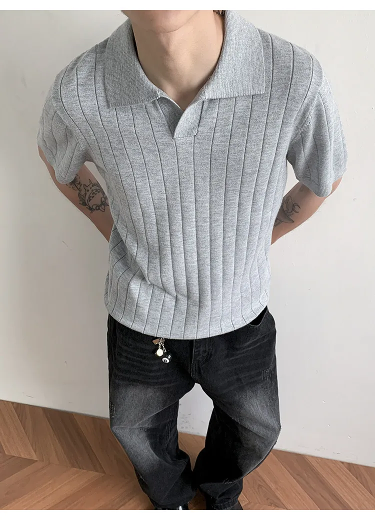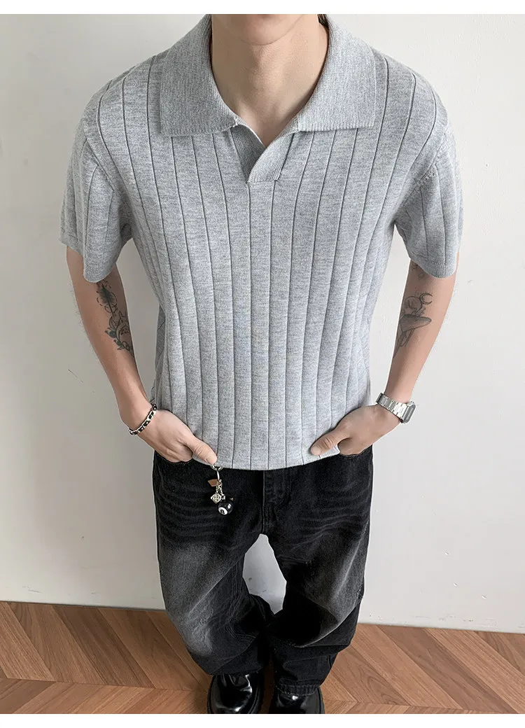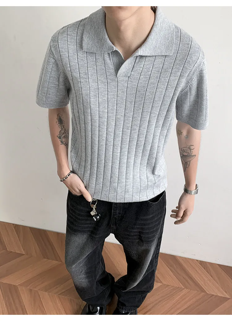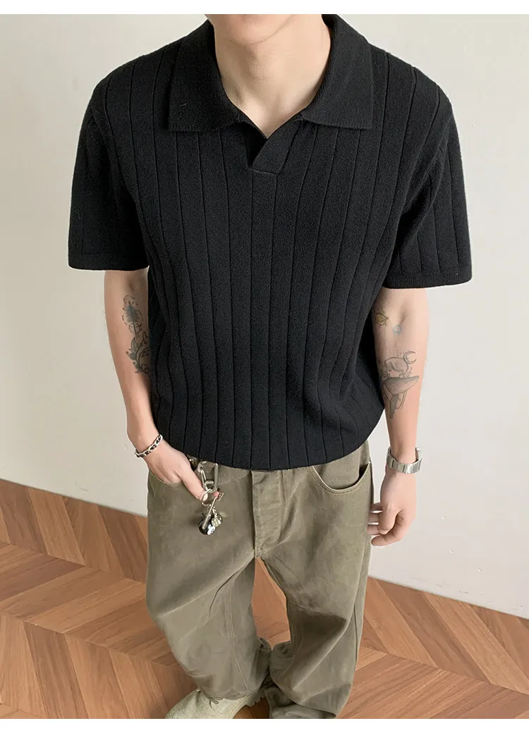 Style 1: Summer Men V Neck Knitted Polo Shirt